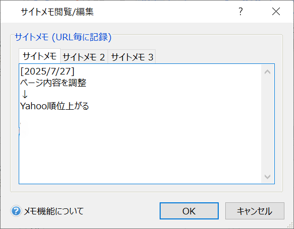 ここではサイトメモを例に操作手順を説明しますが、全てのメモで同じです。